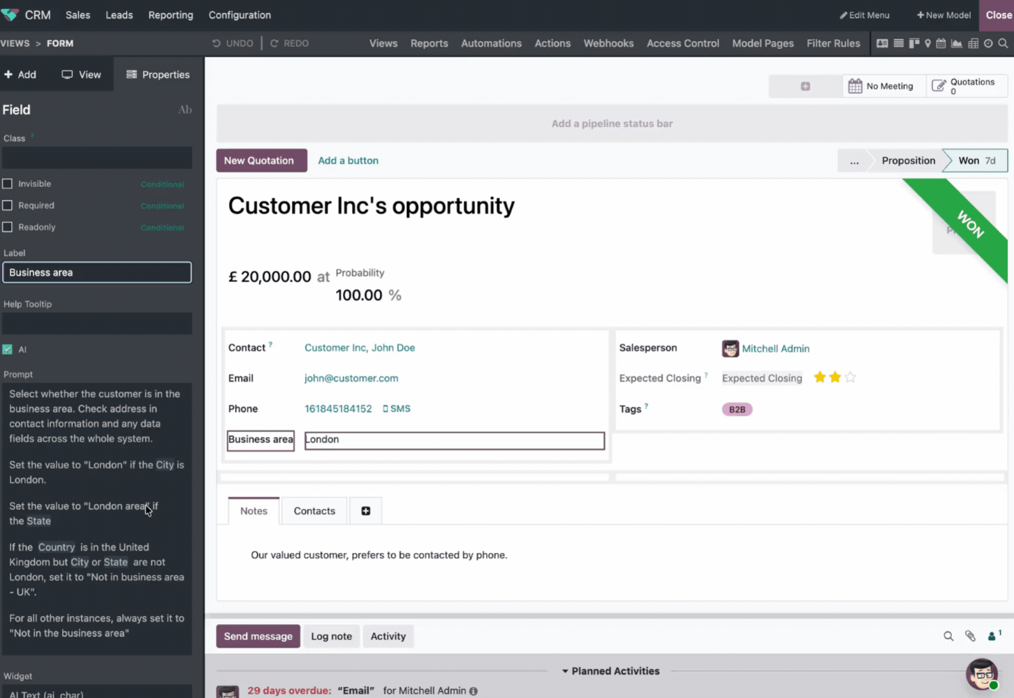 Bonus: You can also configure your AI logic to trigger based on specific events. For example, Odoo AI can re-classify a lead the moment their status changes from "Qualified" to "Won," so your reporting is always accurate.