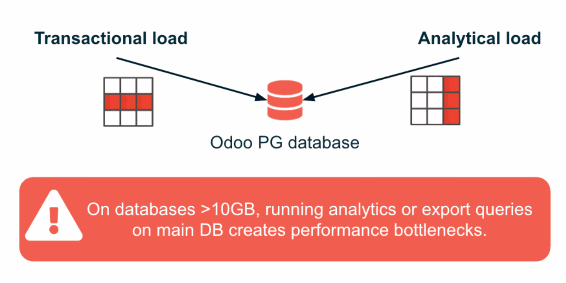 Odoo databases over 10GB can face performance bottlenecks when running analytics.