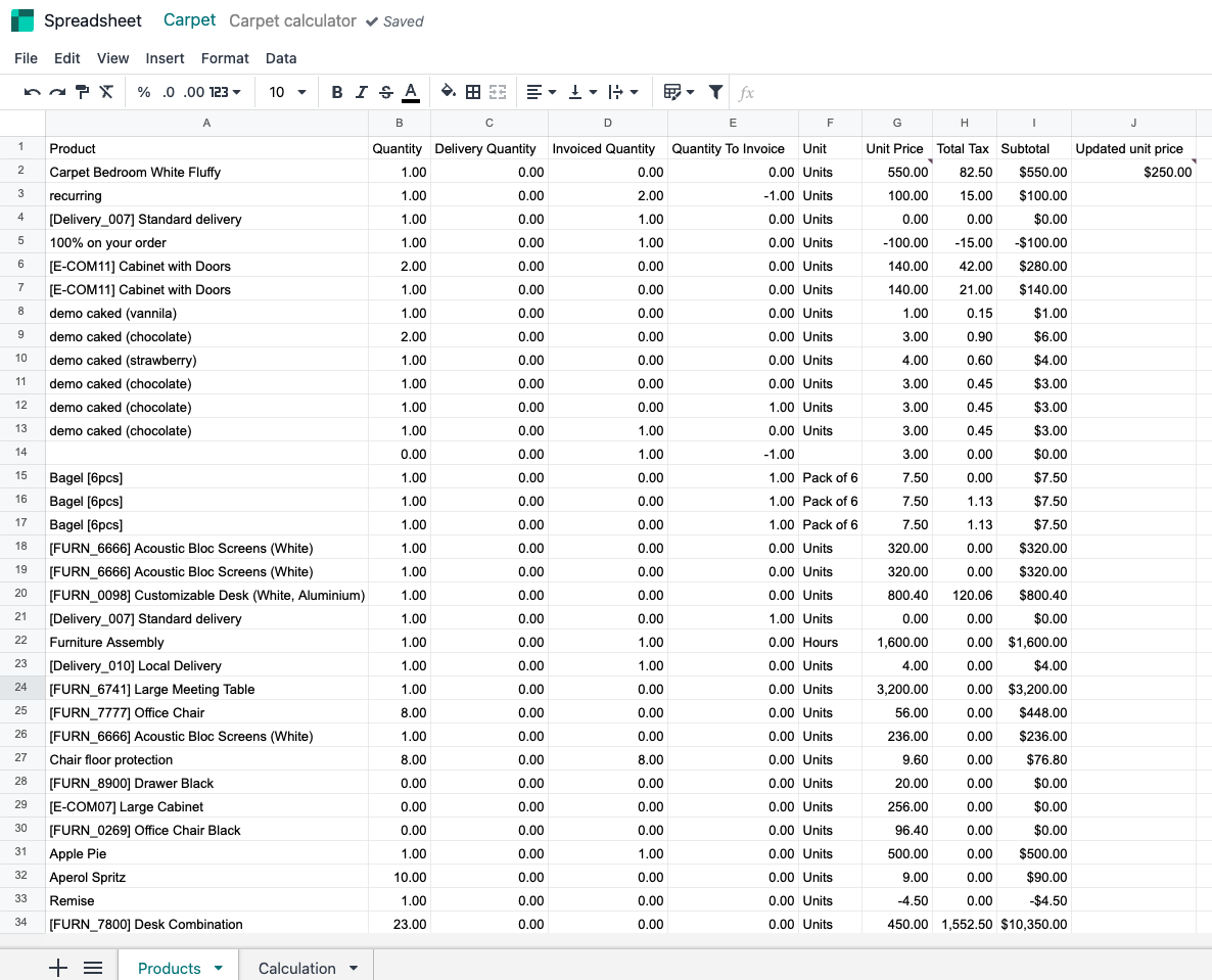 To finalise your calculations, add the updated unit price from your product to the first tab (Products list).