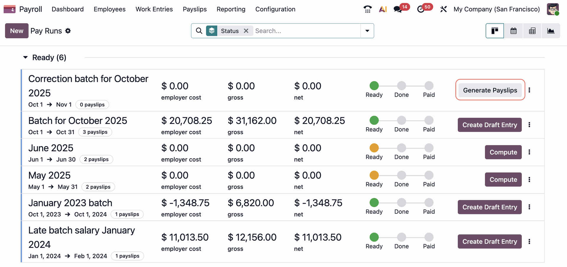 Odoo 19 simplifies the payroll process with pay runs (the new term for payroll batches).
