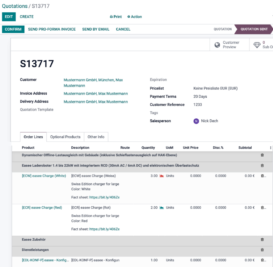 How a Sale Order looks for simplee AG, after integrating their entire survey-based quotation process in Odoo