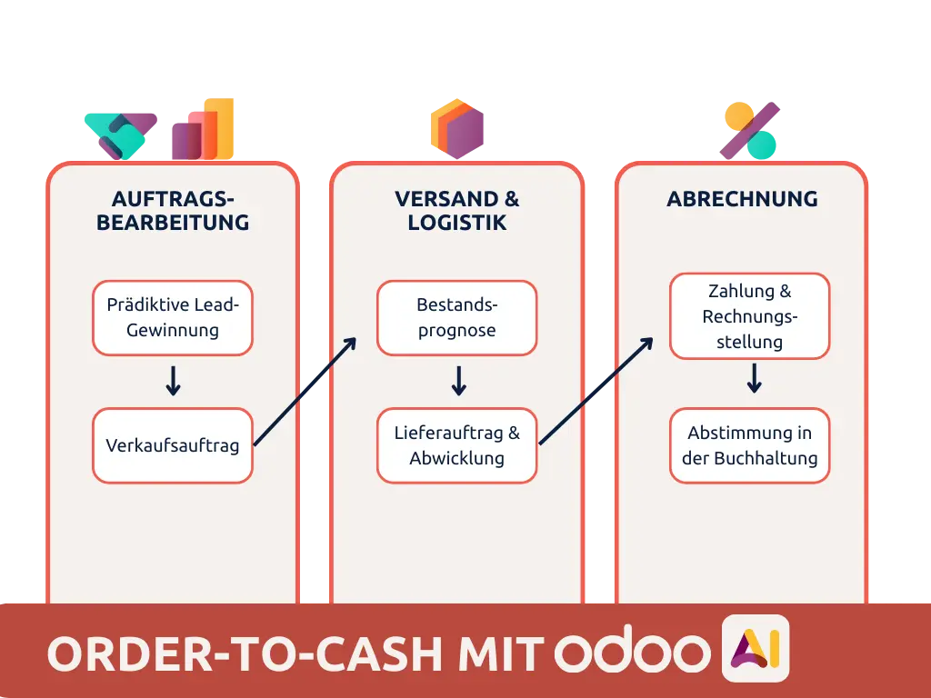 Sie bettet Lernen und Vorhersagen in jede Odoo-App ein und verbessert den O2C-Prozess, um: